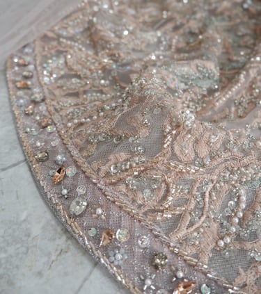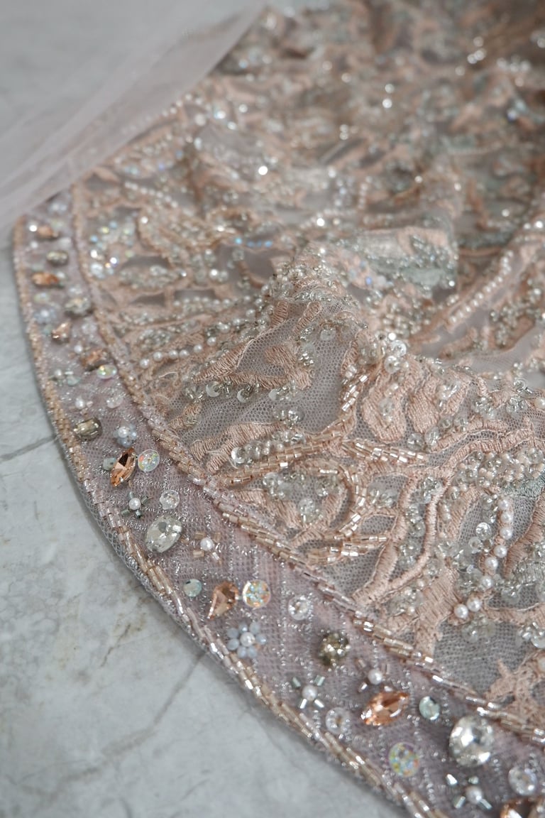 Shimmering rosegold cascading over layers of soft tulle. Embellished with subtle inner glow in the dark lighting.