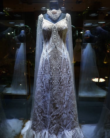 Celebrate every moment in gowns that adapt from grand celebrations to intimate moment. Gowns designed for any occasions, crafted to allow for easy adjustments and resizing, ensuring a flawless, tailored fit that celebrates every client's unique silhouette. Each rental includes a matching hairpiece.