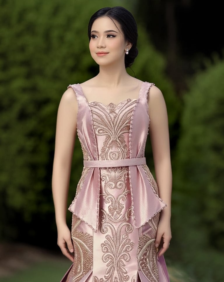 A celebration of form and finesse, this nude-toned mermaid gown clings with regal intent—its baroque lace wrapping the body like a whispered symphony of opulence. Anchored by a sculptural beaded obi belt and ethereal silhouette.
