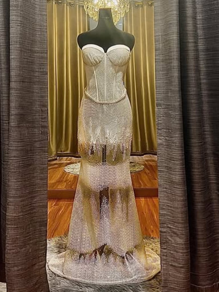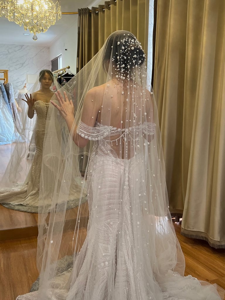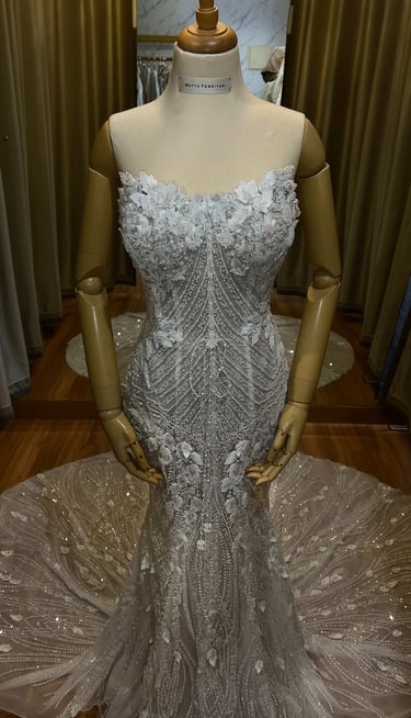 Ethereal Elegance: Pearl-Encrusted Mermaid Gown