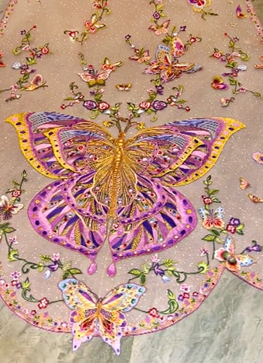 Creating a dreamlike bond, this personalized mom-and-daughter coupling gowns feature stunning 3D butterfly embroidery and intricate 3D floral lace fabric, embodying a sense of elegance. The bold, constructive, layering butterfly ornaments symbolize transformation and grace, while the delicate flowers represent beauty and growth. A truly magical set that celebrates the timeless connection between mother and daughter, wrapped in a luxurious and imaginative design.
